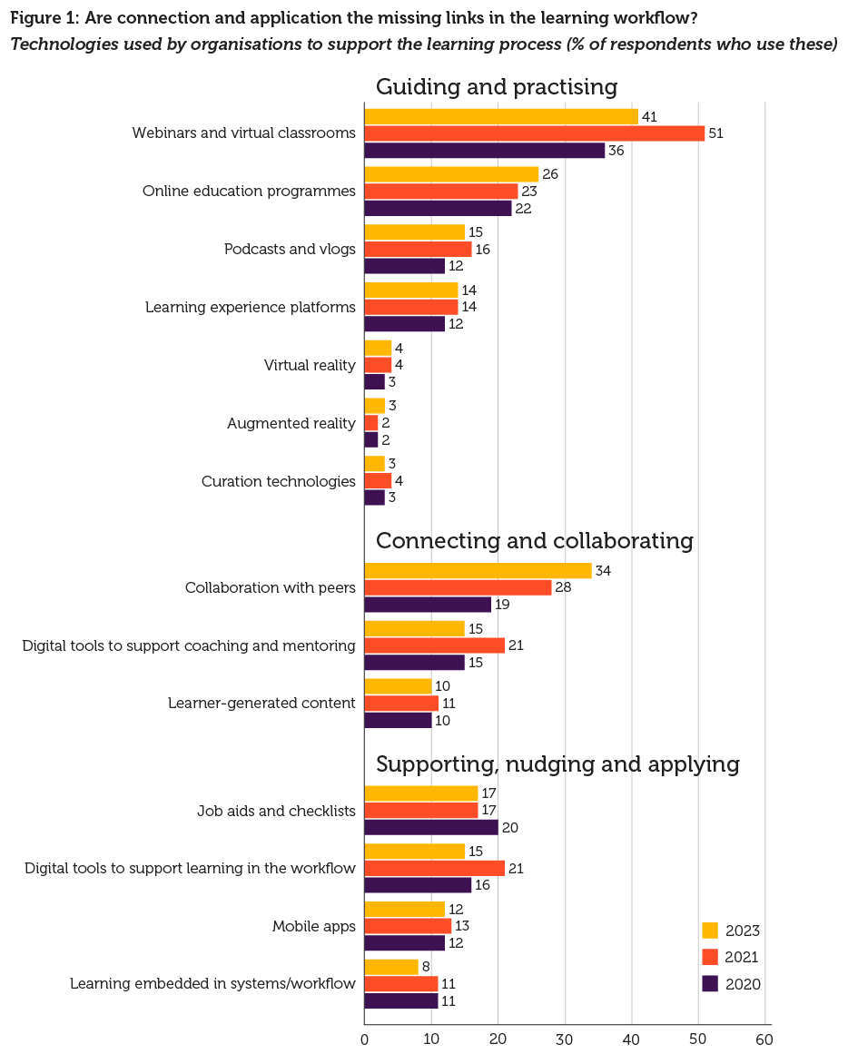 Since 2020, there has been little shift in L&D investment in the tools embedding and supporting learning in the heart of work, essential for building performance and retention. These technologies, while having the potential to turn new ideas into everyday practice and support performance at the point of need, are missing from many L&D kitbags.
