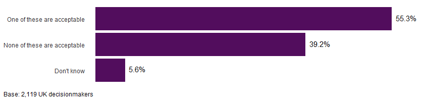 The data showed a spectrum of opinion. At first glance, it appears the largest proportion (39.2%) felt that none of the measures were acceptable, while 5.6% said they didn’t know.