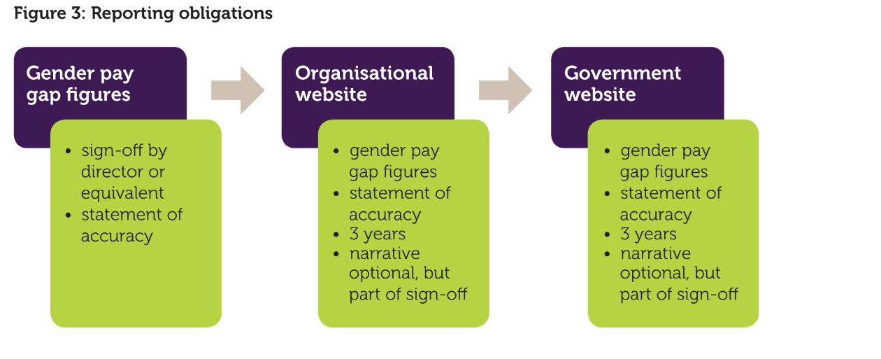 For private and voluntary sector employers, the gender pay gap figures must be accompanied by a statement confirming the report’s accuracy, signed by a director or equivalent, which includes their name and job title. While the Regulations say that sign-off should be by a director or equivalent, you have some choice over who this might be. It could be, for example, the finance or HR director, or whoever at director level is leading on equalities.
